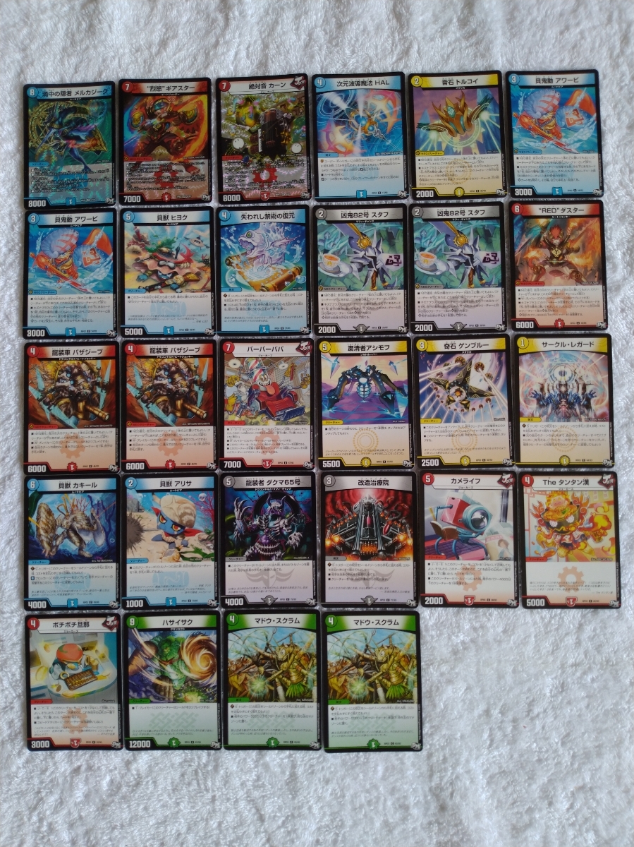 - 中古 DM デュエル・マスターズ 渦中の隠者 メルカジーク “烈怒”ギアスター 絶対音 カーン 貝鬼動 アワービ 凶鬼82号 スタフ 等 27枚