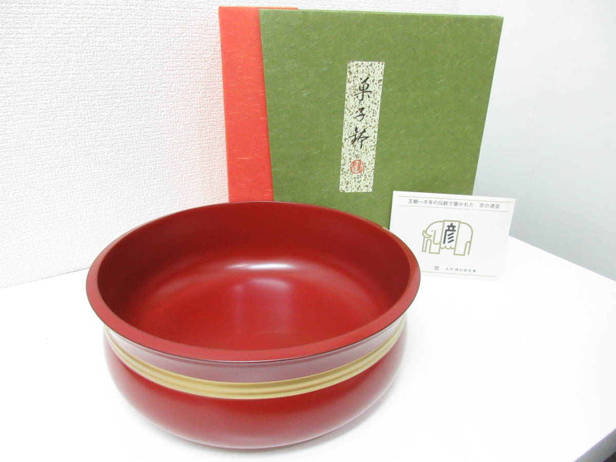 - 未使用品■象彦 西村彦兵衛 漆器 天然木 菓子鉢 大鉢 箱入り 管理1906 H-5