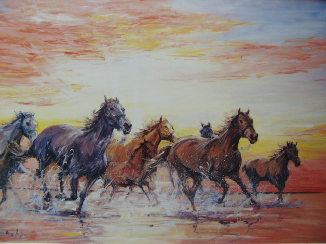 - 中畑 そうじん 【旭光の海】 希少画集画、状態良好、新品高級額装付、送料無料、洋画 油彩 風景、zero