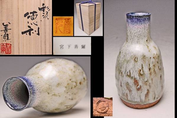 - 宮下善爾 ★ 彩泥窯変徳利 ★ 共箱共布栞 ★ 検 楠部弥一 京焼 物故巨匠 ★