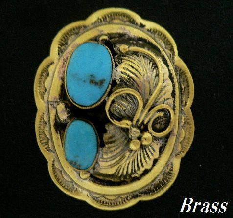 - 真鍮製 天然石ターコイズ付ネイティブ風ブラス コンチョ/Brassコンチョ多数