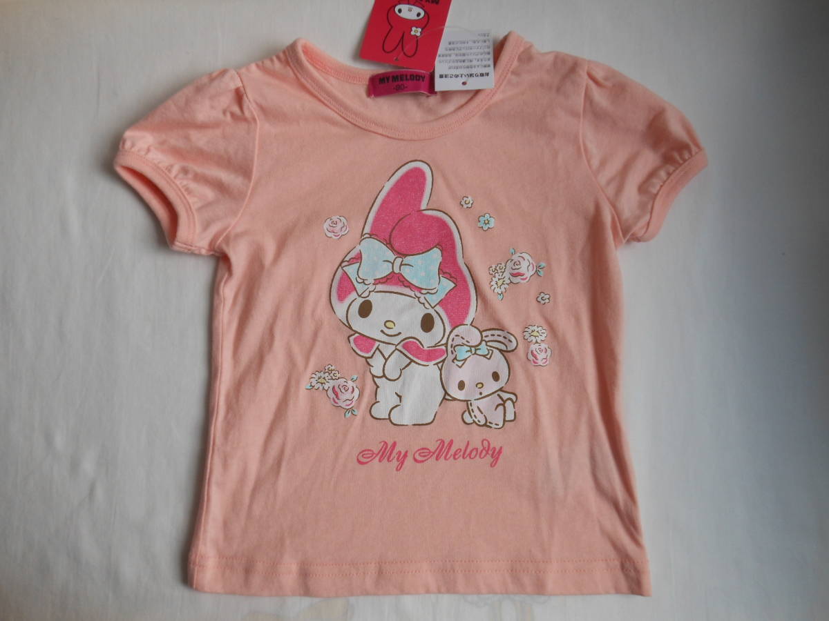 > 新品タグ付きマイメロディ半袖Tシャツ サーモンピンク 90 ぷっくり袖 サンリオ