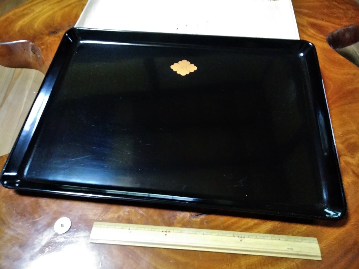 - 伊予桜井塗戸倉屋謹製 花菱文様美術漆器角盆 : 縦約34㌢横約48㌢高さ約3㌢ 堅牢別製 美品 祝盆
