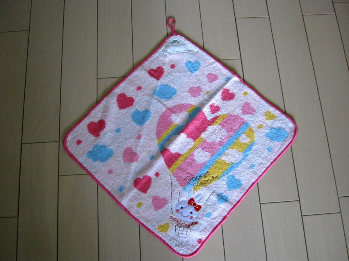 - 1.【新品】ポケットタウン*ループ付ハンドタオル*ピンク*アップリケ刺繍