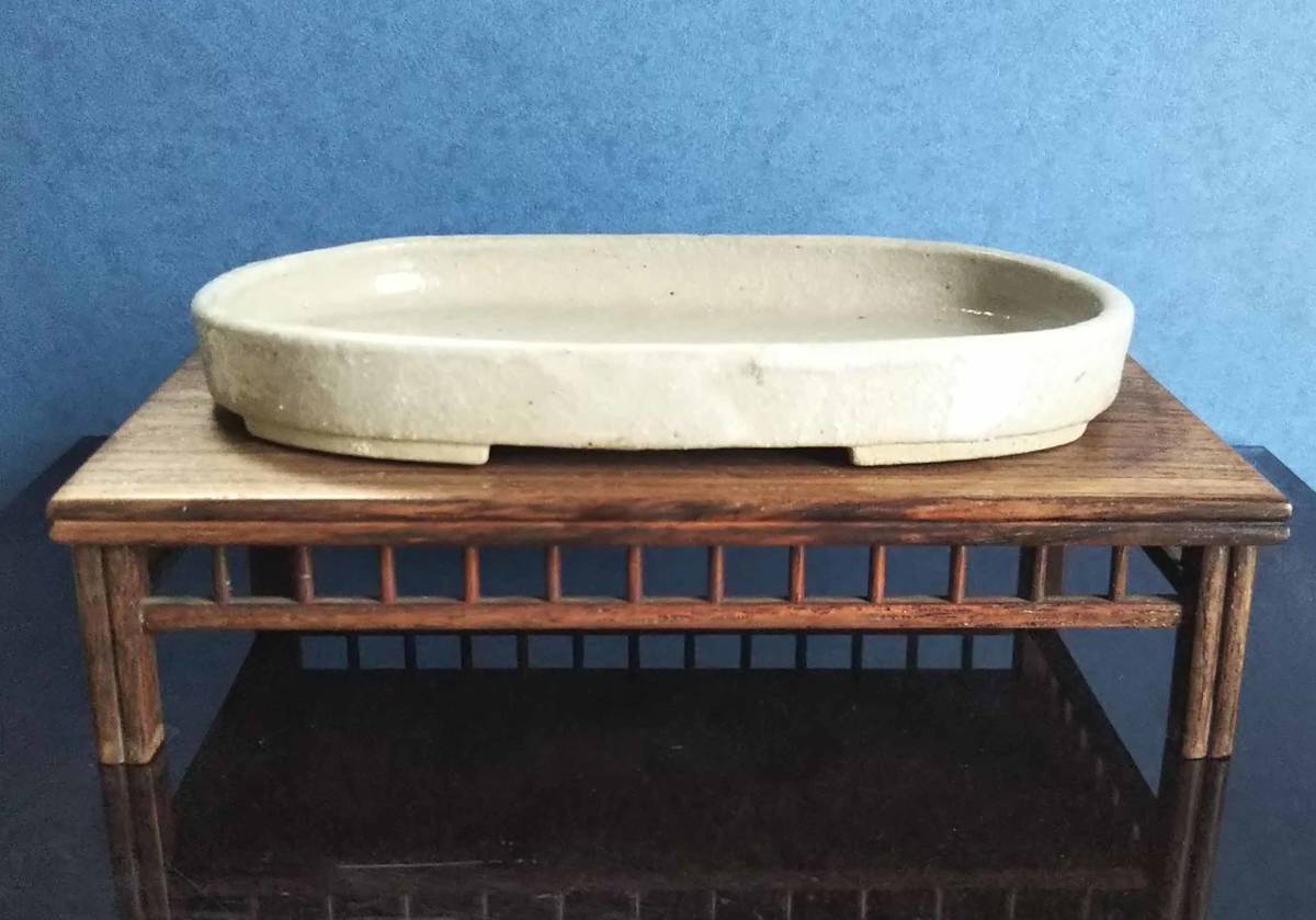 > ※希少(物故作家)初代 寿悦の水盤※薄造り 木全悦二製陶所(Ju-6) 白均窯楕円水盤 幅156mm x 奥行94mm x 高さ18mm(足含む)