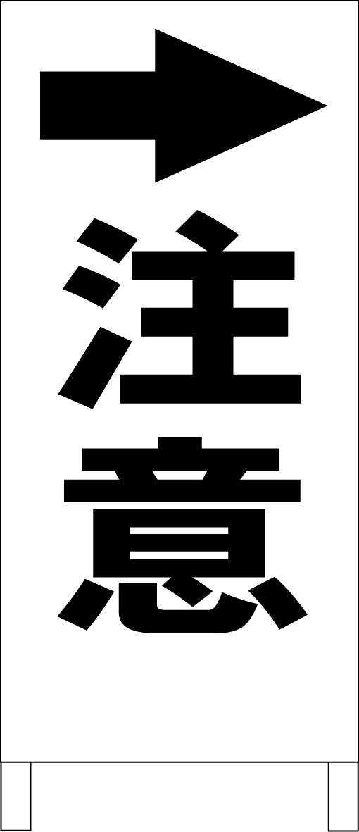 - シンプルA型スタンド看板「注意・矢印右(黒)」【工場・現場】全長1m・屋外可