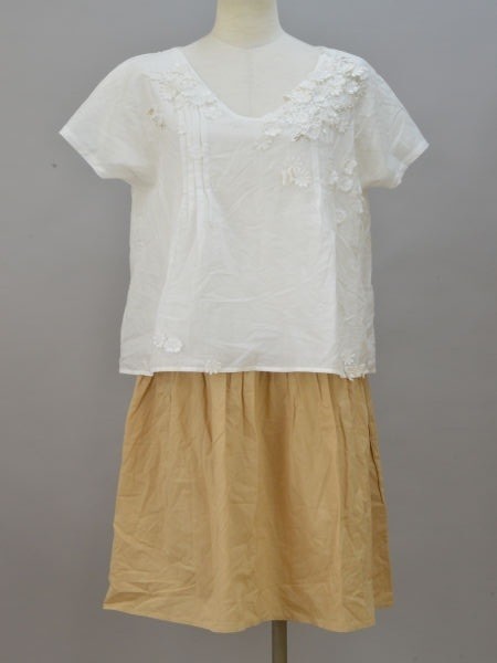 > スナオクワハラ SUNAOKUWAHARA ワンピース Mサイズ ホワイト×ベージュ レディース F-M11117