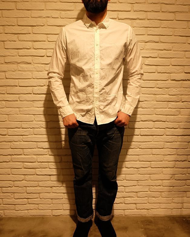 > 新品 FINGER FOX AND SHIRTS フィンガーフォックスアンドシャツ 切替シャツ 白シャツ XS オーガニックコットン