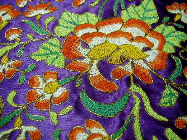 - インドネシア・ミナンカバウ族の豪華刺繍ショール(パープル)