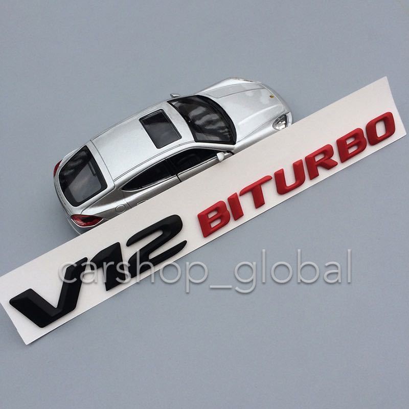 > ベンツ V12 BITURBO サイドエンブレム 2個 ブラック×レッド 凹凸 A/B/C/E/S/G/CLS/GLK/GLS/SLK/SLS/GLE/GLS/AMG/SL65/CL65/S65/57S/62S
