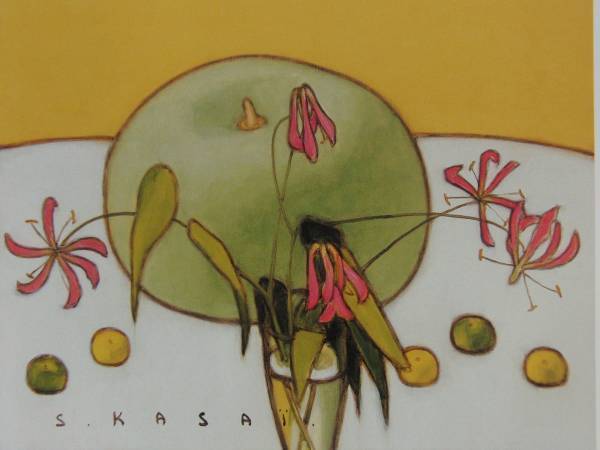 - 笠井 誠一、冬瓜とグロリオサ、希少画版より、 新品高級額付、iafa
