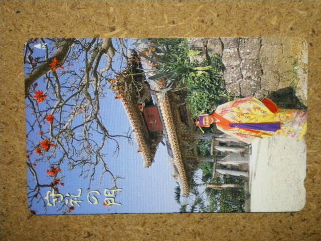 - siro・syub2・首里城 守礼門 デイゴ 琉装 未使用 50度数 テレカ
