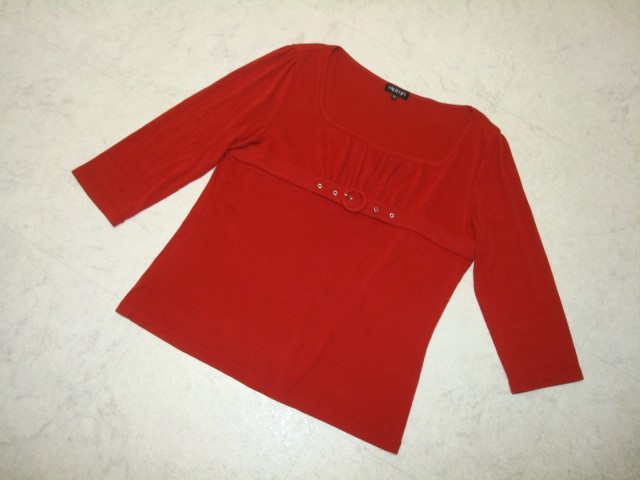 > ■美品 INDIVI インディヴィ 日本製 暗めの赤 レッド 7分袖 長袖 カットソー ニットセーター ブラウス 伸縮性あり 42号 13号 XLサイズ