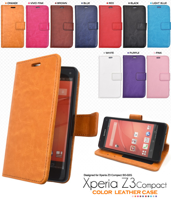 > 【送料無料】Xperia Z3 Compact SO-02G 手帳型ケース レザー スタンド ケース エクスペリアz3 コンパクト