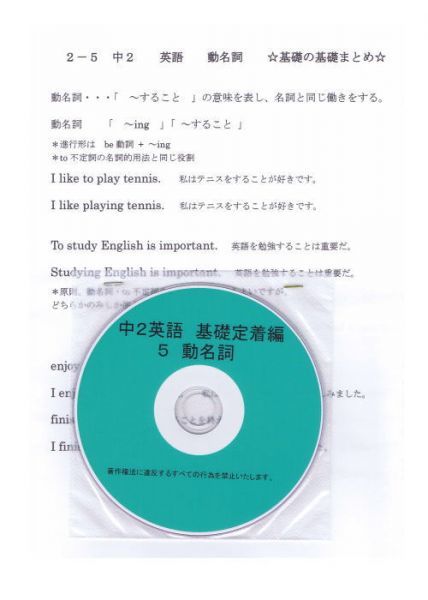 - プロが教える 英語 中学 2年 DVD 5 動名詞 基礎編 問題集 中2 中学2年 中学校 復習 自宅学習 問題 教材 まとめ プリント 販売多数