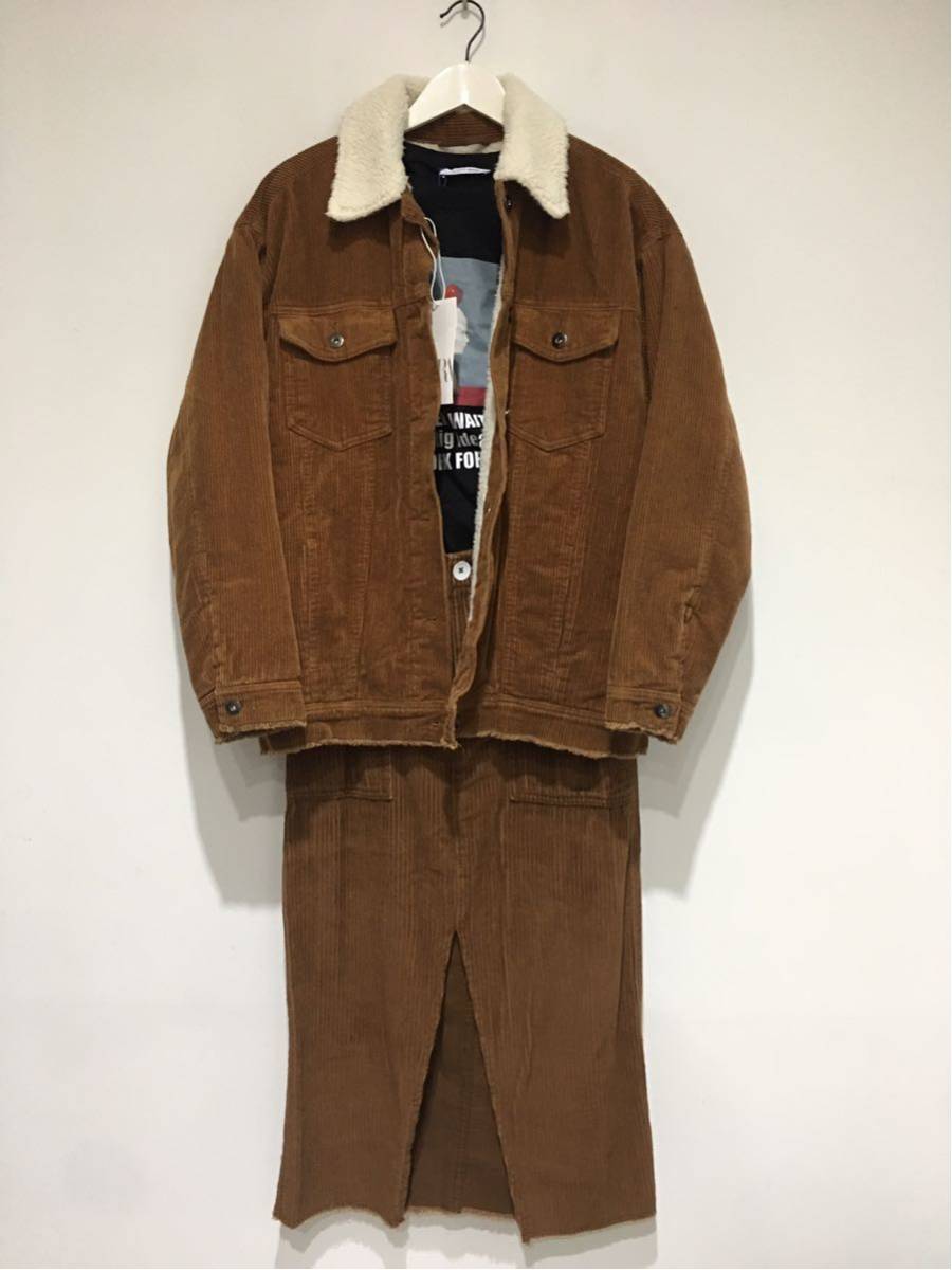 > ★新品タグ付き ZARA ザラ コーデュロイ ジャケット もこもこ ロングスカート セットアップ ブラウン 茶色 SM