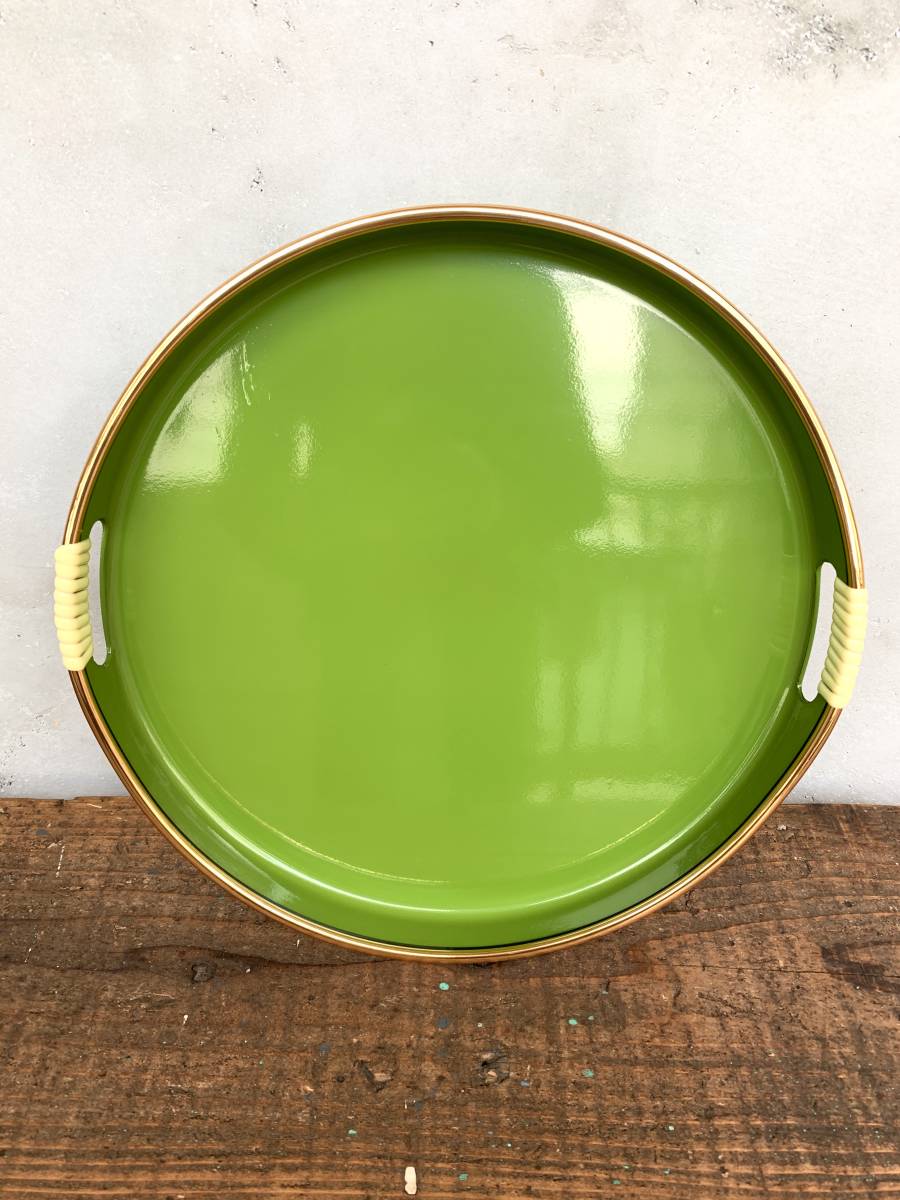 キレイな緑色の丸盆です。