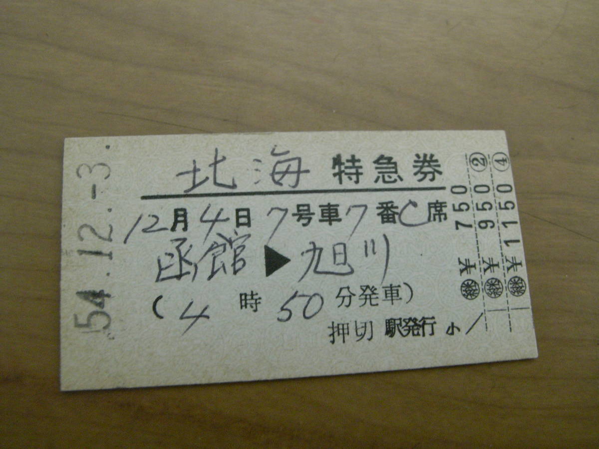 - 北海 特急券 函館→旭川 昭和54年12月3日発行 押切駅発行