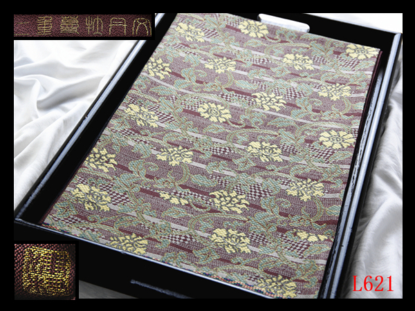 > L621厳選西陣 作家物計算し尽くした織物の美学 二重蔓牡丹文葡萄茶色地 極上逸品六通高級美術正絹袋帯 ◇検◇簪名古屋帯締め