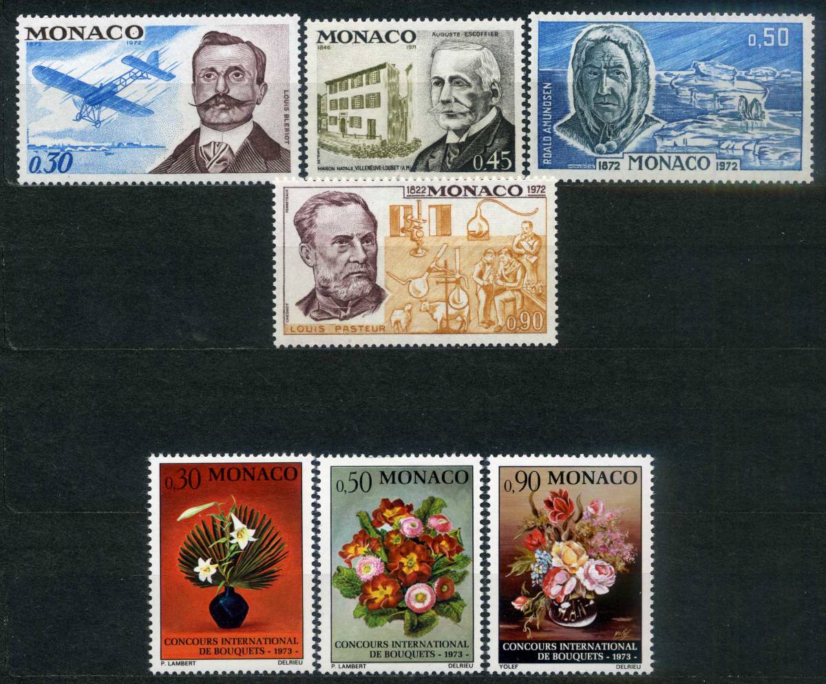 - ★1972年 モナコ公国 - フランス航空界の先駆者ルイ・ブレリオ他 4種完 /国際花博覧会 3種完 未使用(MNH)★R-351★
