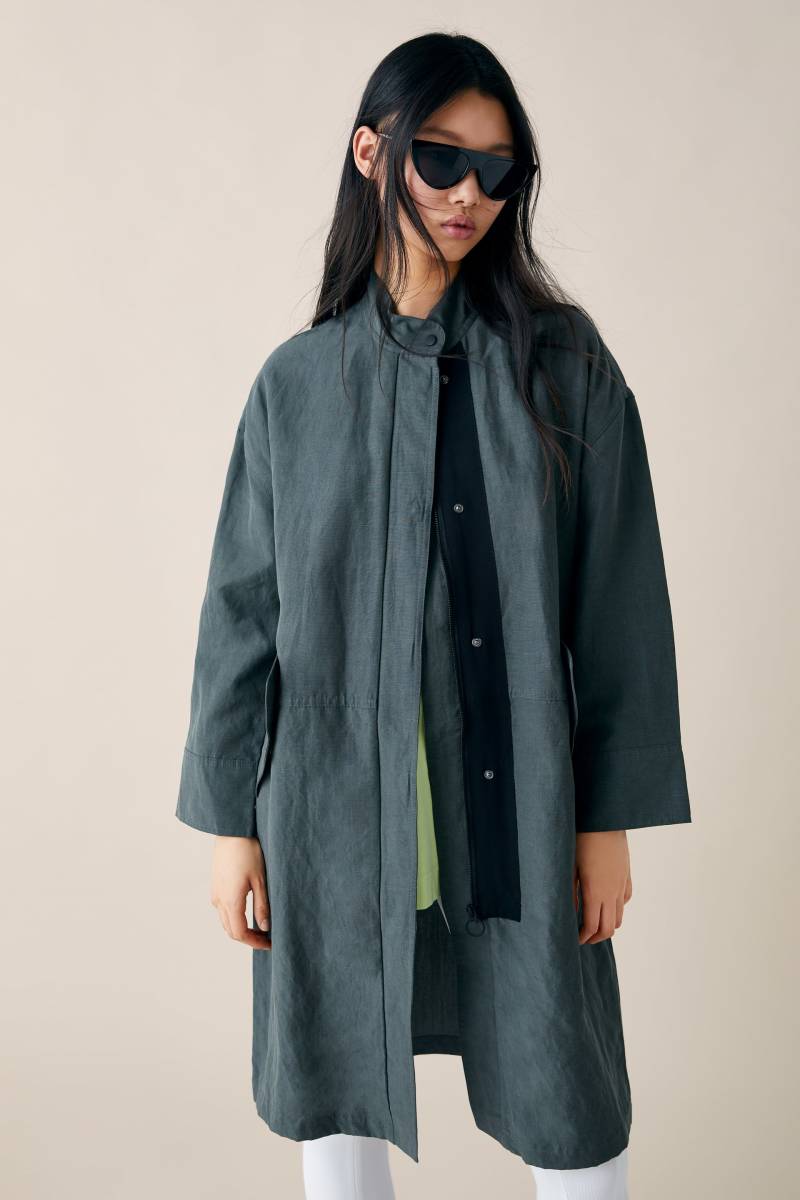 > /[新品 タグ付き ZARA ザラ ポケット付き ロング丈 ジャケット 11990円 カーキグリーン コート ミリタリー 匿名発送]