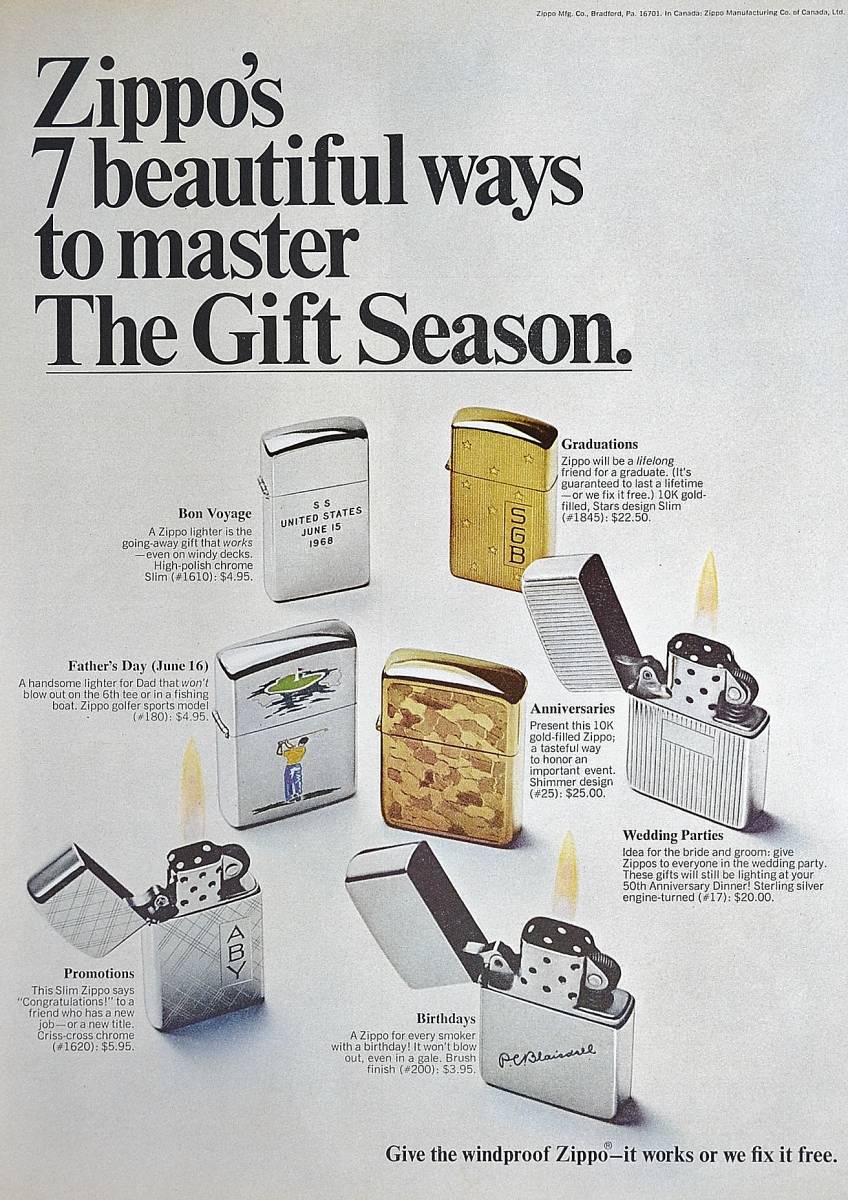 > 稀少!1960年代Zippo広告/ジッポー/ライター/煙草/シガー/ゴルフ/A