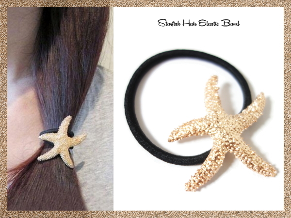 > ★スターフィッシュヘアゴム★ヒトデ 星 海 マリン シュシュ 髪留め ゴールド 春夏 ポイント消化 新品 シェル 貝殻 人気 可愛い ビーチ