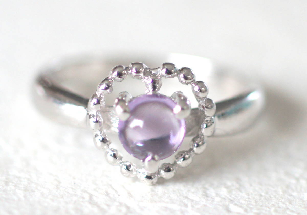 - シルバー925製 ハートのフレームに淡いピンク系石付きリング サイズ約9号