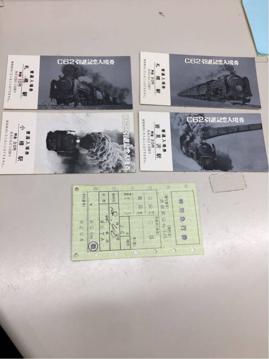 - N2380 【アンティーク】C62 引退記念入場券 他