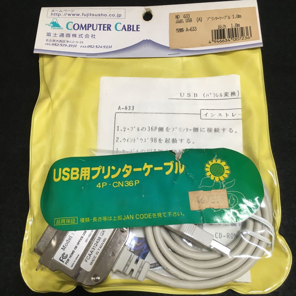 - 未使用 富士通商株式会社 A-633 USB用プリンターケーブル 4P-CN36P