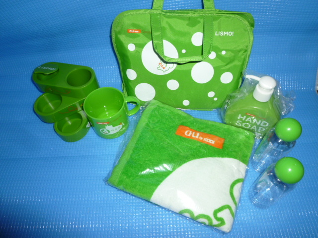 - Cレア品★未使用・非売品★au LISMO リスモ スパセット(タオルとミニボトル2本)と ソープボトル他4点