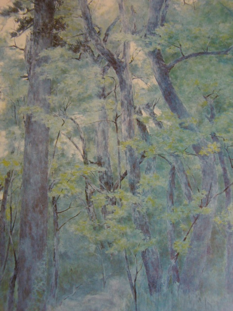 - 那須勝哉、【緑蔭】、希少な額装用画集より、新品額装付、状態良好、送料込み