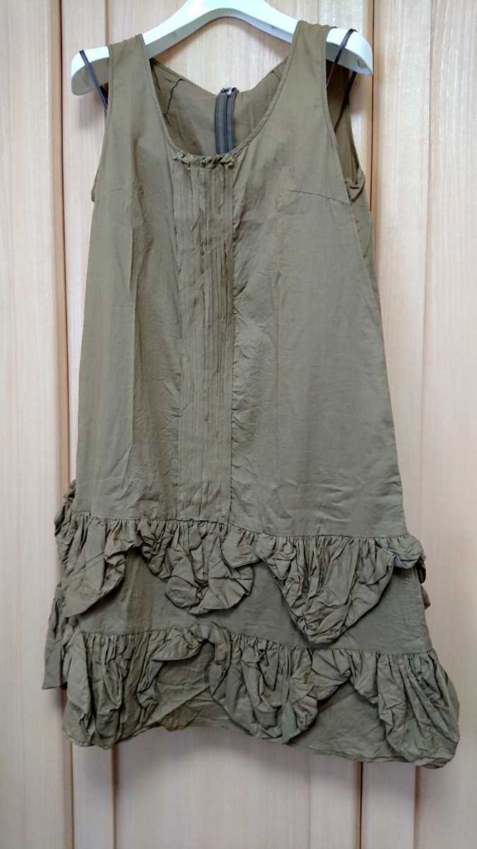 > タグ付き Magia Mサイズ マージア フリル飾り コットン ノースリーブ ワンピースインナードレス付 オリーブグリーン 38サイズ 未使用