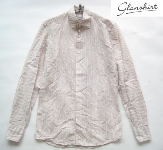 - 美品イタリア製!!グランス Glans*爽やかストライプ柄長袖シャツ 37 実寸S ベージュ×茶×カーキ