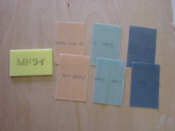 クリヤー塗装後、④のパッドに②のグリーンと③のブラックをつけ、クリヤー後のタレや、ゴミなどを取り除いて下さい。作業性が少し悪いなと感じたら①のオレンジから使ってグリーン、ブラックを使っていってください。ペーパー目はジワジワと細かくしていく感じをイメージして下さい。白系やソリッドだとオレンジ、グリーンで磨き作業に入れます、黒系、濃い色系、シルバー系などはブラックまで使用してペーパー目を細かくしていって下さい。