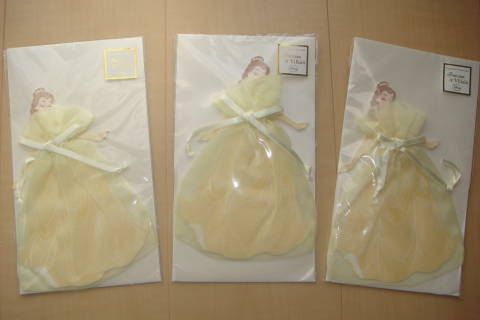 > ★即決★ディズニー 美女と野獣 ベル 封筒 ギフトカード ラッピング メッセージカード 3個セット オーガンジー巾着袋★未使用★