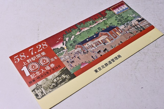 - 記念きっぷ ★ 上野駅 開業100周年 記念入場券 ★ 国鉄 ★ 昭和58年 ★