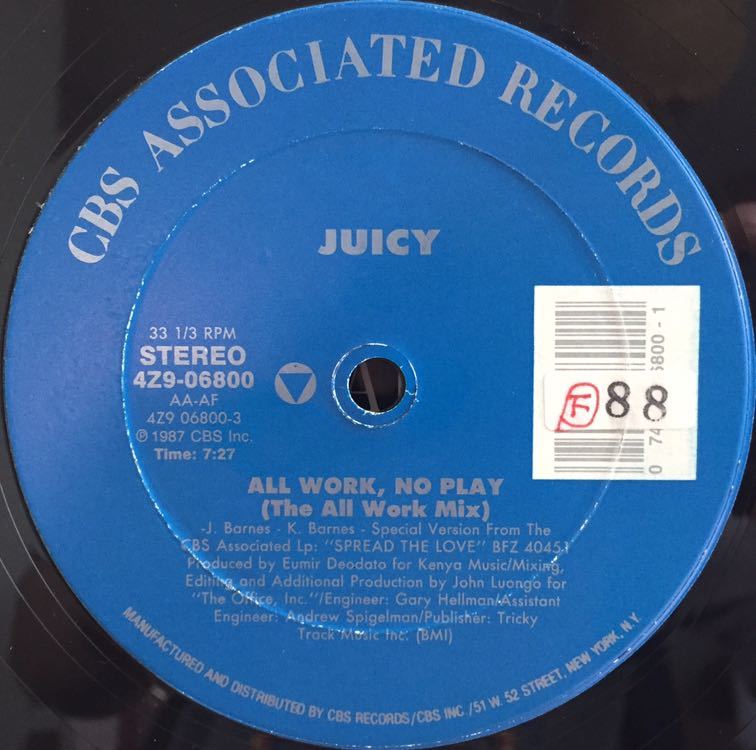 - 【US盤/美盤(NM)/12】Juicy All Work, No Play / 試聴検品済
