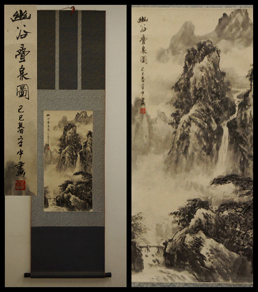 - 【閑】中国掛軸 游守中書画 肉筆☆時代物☆A0803■