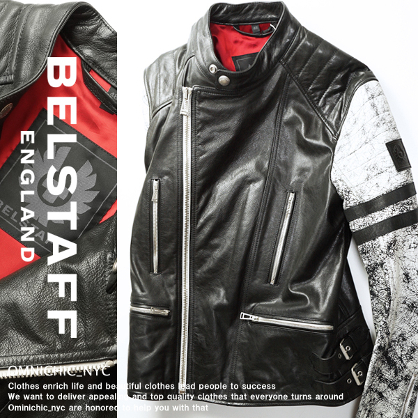 > ■新品24万【BELSTAFF】極上!ベルスタッフハンドワックス/ENNIS/バイカラーレザーモーターサイクルライダースジャケット48