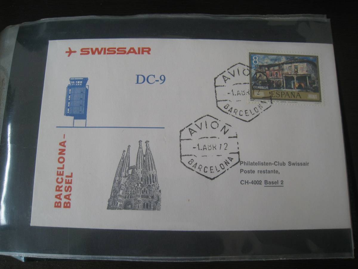 - ★F113 FDC/FFC初日カバー1972 スイス航空 DC-9 バルセロナ - バゼル -