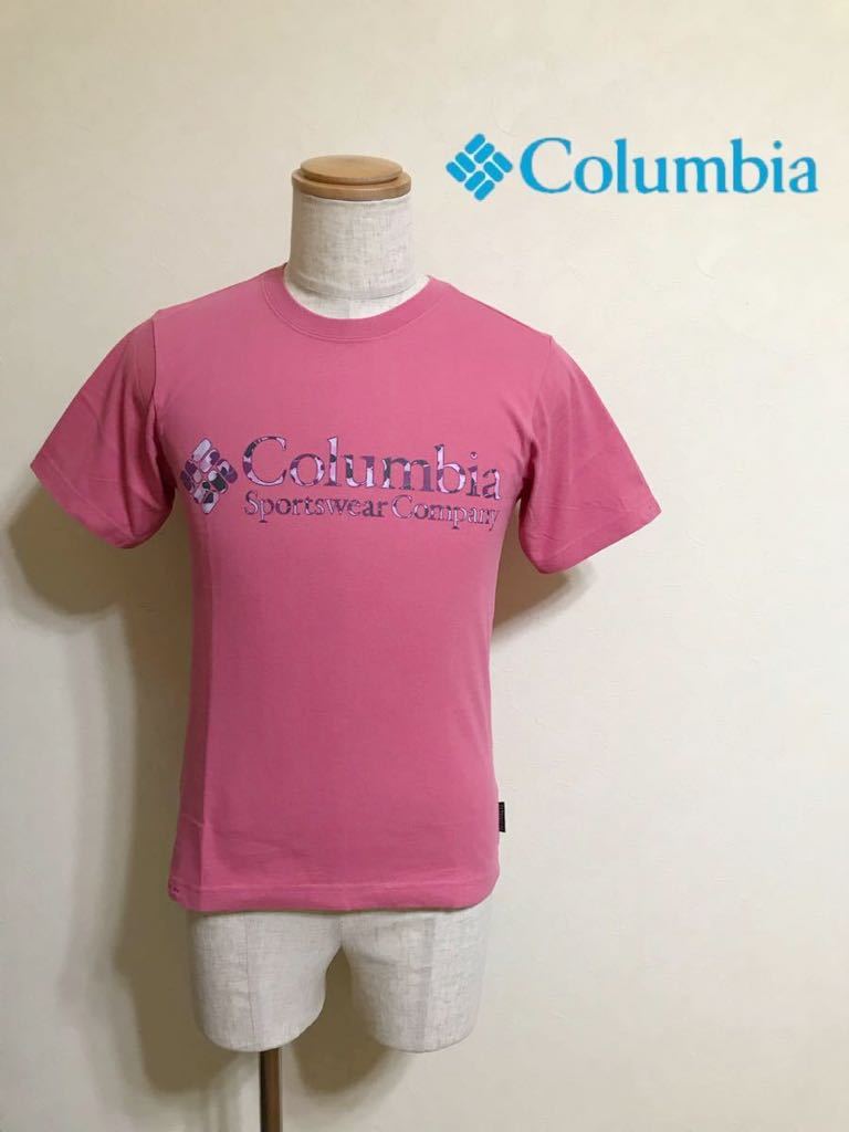 - 【良品】 Colombia TITANIUM OMNI-DRY コロンビア アウトドア ドライTシャツ ビッグロゴ カモフラ トップス 半袖 サイズXS ピンク