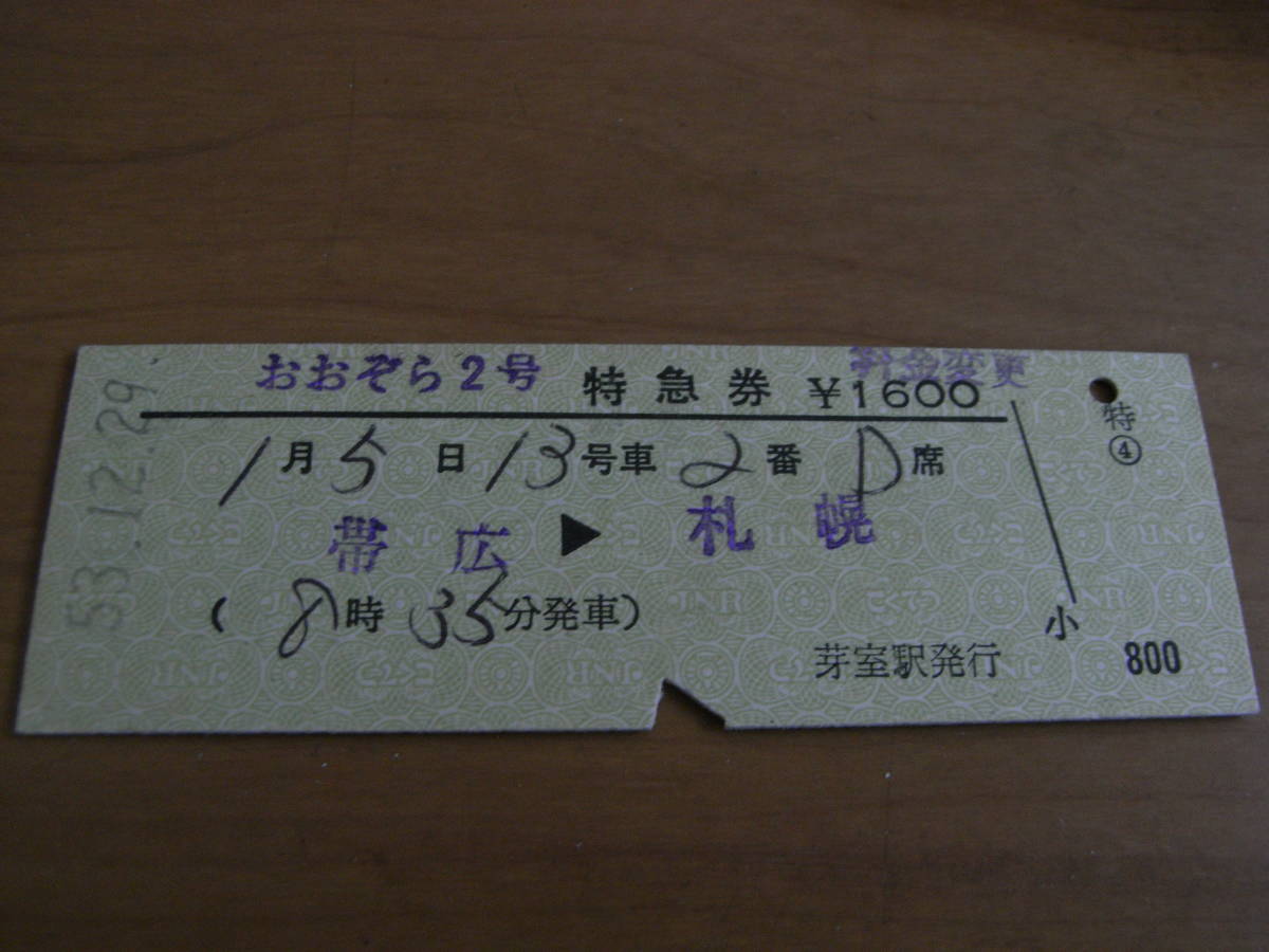 - おおぞら2号 特急券 帯広→札幌 昭和53年12月29日発行 芽室駅発行