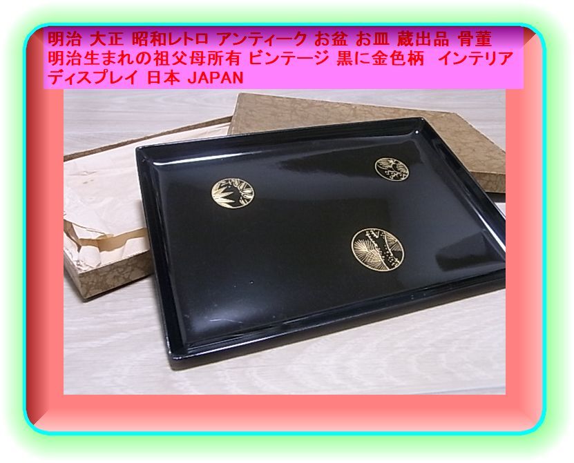 |  | 明治 大正 昭和レトロ アンティーク お盆 お皿 蔵出品 骨董 明治生まれの祖父母所有 ビンテージ 黒に金色柄  インテリア ディスプレイ 日本 JAPAN |  |