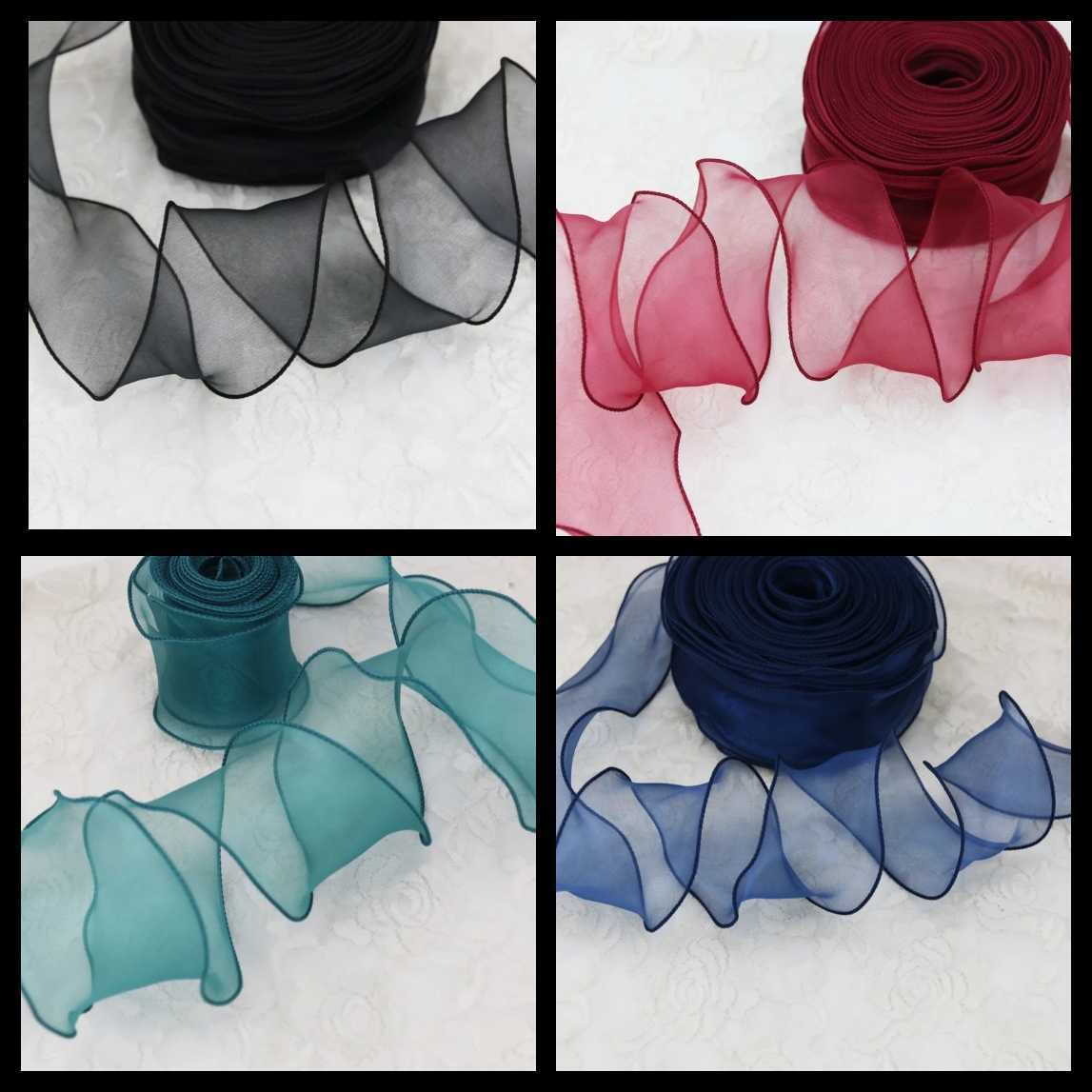 > ハンドメイド 資材 生地 リボン フリル ポリエステル ワインレッド グリーン ネイビー ブラック 4色セット 50㎜ 各450㎝