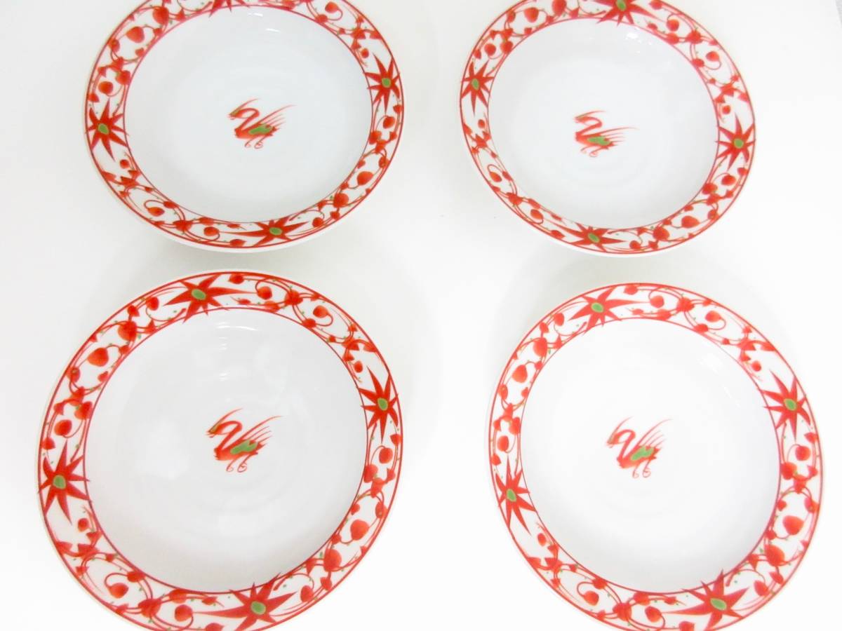 > 未使用品・レアな一品!◆たち吉 橘吉 TACHIKICHI 4客セット 中皿 多様皿 朱色 同柄セット 花柄縁 食器 伝統 工芸品 管理2009 L-9