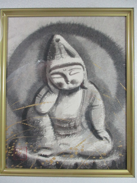 - S-483 穐月明 「野の佛」 絵画 日本画 水墨画 共シール 良好品