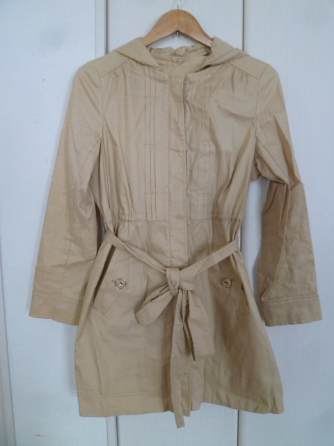 - any sis/エニィシス○ベージュフード付き2WAYノーカラーコート2/ウエストリボンベルト付きオンワード樫山スプリングコート○③JK115