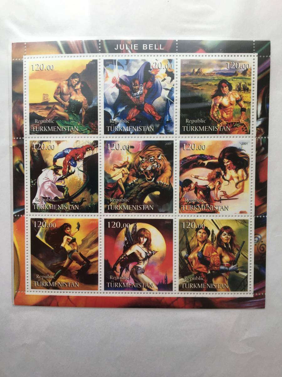 - 切手:イラスト/トルクメニスタン*ジュリー・ベル画*2001年*シート*