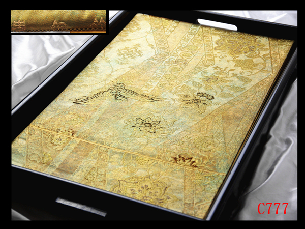 > C777厳選西陣 名門老舗 高島織物 青銅箔 更紗花鳥古典文様 六通高級正絹純金糸美術袋帯 ◇検◇簪着物名古屋帯帯締め